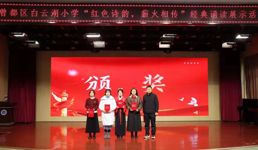 春風(fēng)拂面柳絲長,白云湖畔書聲瑯。以紅色經(jīng)典詩文為載體,傳承中華優(yōu)秀傳統(tǒng)文化,3月6日下午,曾都區(qū)白云湖小學(xué)舉辦了一場別開生面的“紅色詩韻,薪火相傳”經(jīng)典誦讀展示活動。此活動旨在提升我校師生誦讀能力和水平,將紅色基因深植于師生心田。