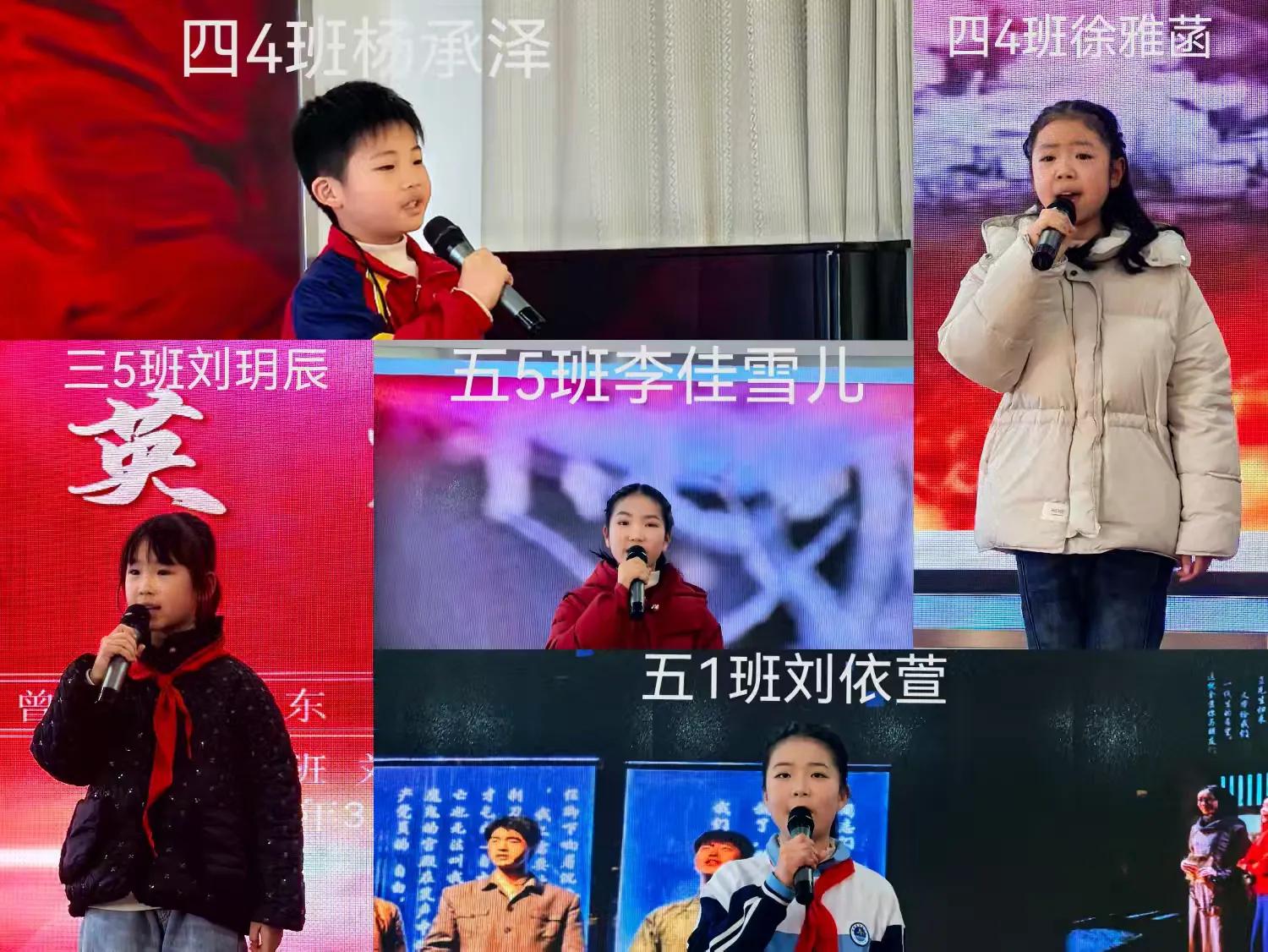 來自四 4 班的楊承澤,在《英雄》的誦讀中,用富有感染力的語調(diào),向那些為國家和人民英勇獻身的無名英雄致敬。三 5 班劉玥辰同誦《英雄》,他的聲音仿佛能穿越時空,將聽眾帶回到那個戰(zhàn)火紛飛的年代,讓人深刻感受到英雄們的偉大與無私。五 1 班的劉依萱,在《紅巖為什么這樣紅》里尋找信仰之光,從江姐等革命先烈的事跡中汲取力量,展現(xiàn)出堅韌不拔的精神。五 5 班的李佳雪兒以冰雕意象詮釋生命永恒,借《生命的冰雕》讓人們銘記那些在艱苦環(huán)境中堅守、奉獻的英雄。四 4 班的許雅菡在《紅鐵》中,將工業(yè)文明與革命精神熔鑄,展現(xiàn)出在時代發(fā)展中,革命精神的傳承與延續(xù)。這些作品讓紅色基因在童聲中代代相傳。