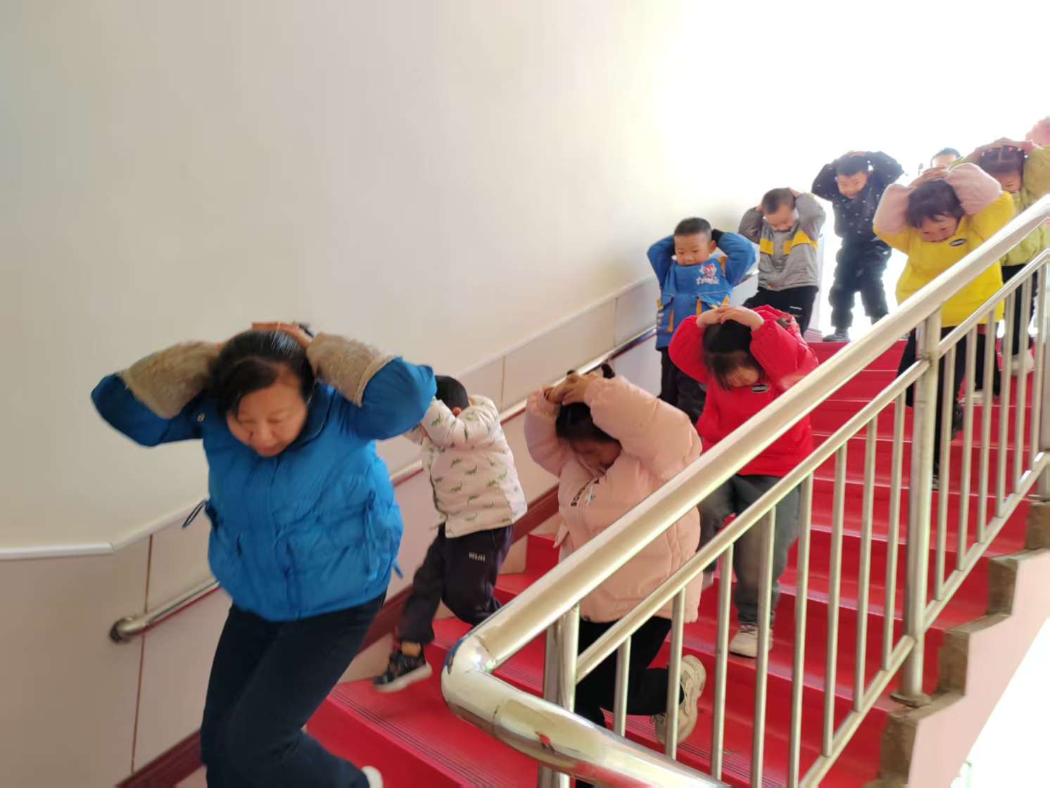 上午8點40分,隨著警報聲響起,防踩踏演練正式開始,各班幼兒在老師的帶領(lǐng)下,以手護(hù)頸,按照事先預(yù)定好的路線迅速地撤離到操場指定的位置,整個過程快速、安全、有序,無任何推搡、擁擠的現(xiàn)象發(fā)生。全體師生到達(dá)安全地點后,各班教師及時清點人數(shù),并立即上報總指揮,確保不遺漏一人。隨后,總指揮對本次演練進(jìn)行了總結(jié),并現(xiàn)場講解了防踩踏安全知識及自我保護(hù)要領(lǐng)。