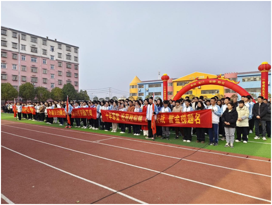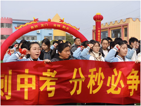 大會在激昂的國歌聲中拉開序幕。教師們夾道迎接,學(xué)子們高舉旗幟,邁著矯健步伐穿過象征榮耀的中考決勝門,口號鏗鏘,展現(xiàn)出青春的昂揚(yáng)斗志。