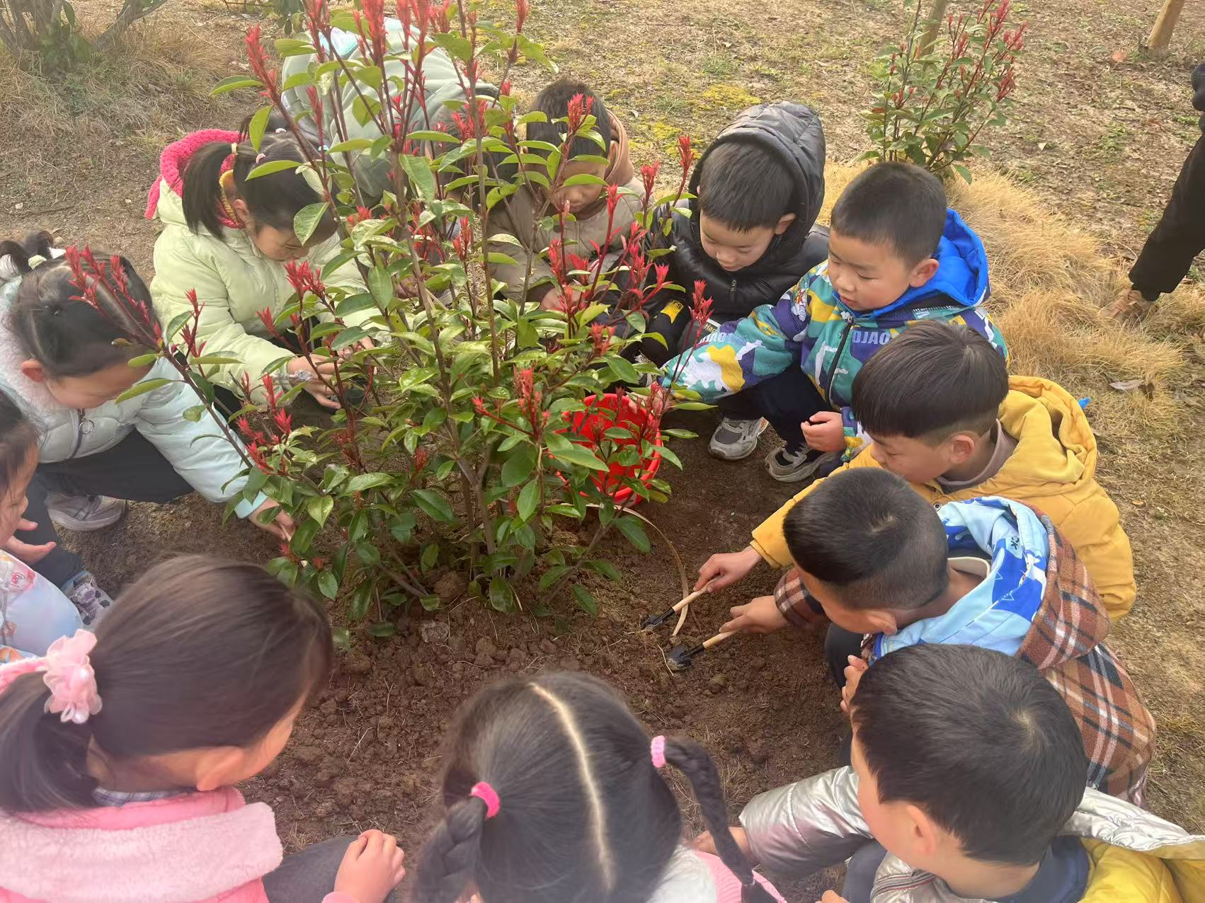 活動結束后,孩子們圍坐在新栽的小樹苗旁,分享著自己的感受和收獲。他們用稚嫩卻真摯的話語表達了對大自然的敬畏與熱愛。沈園長表示,這樣的活動不僅讓孩子們親身體驗到植樹造林的意義,更重要的是在他們幼小的心靈中播下綠色的種子,培養(yǎng)他們從小樹立環(huán)保意識,為構建美麗家園貢獻自己的力量。