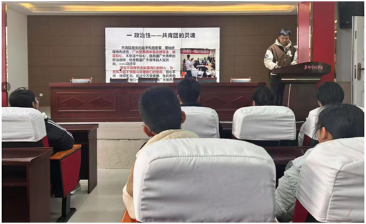 同學(xué)們專注地聆聽著講解。大屏幕上播放著關(guān)于共青團歷史和發(fā)展歷程的內(nèi)容,生動形象的畫面讓學(xué)生們仿佛置身于那段充滿激情與奮斗的歷史之中。主講臺上,劉老師用通俗易懂的語言介紹了共青團的基本發(fā)展過程以及它在國家建設(shè)和社會發(fā)展中所發(fā)揮的重要作用。通過這樣的方式,同學(xué)們不僅學(xué)到了書本以外的知識,更深刻體會到作為新時代青年的責(zé)任與使命。