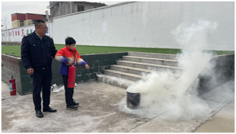 消防教官向同學(xué)們介紹了干粉滅火器的使用方法——提、拔、瞄、壓。并讓同學(xué)們與教職工參與其中,使用滅火器撲滅明火,掌握使用滅火器的方法。