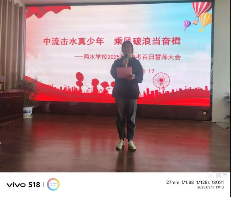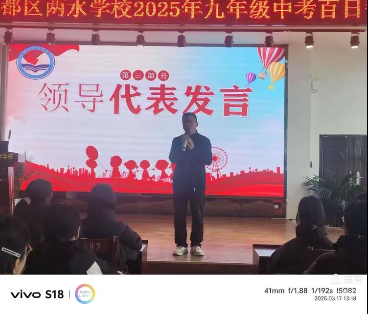 隨州新聞網(wǎng)訊 (通訊員謝依宸、汪玉婷)百日光陰戰(zhàn)中考,青春誓言鑄輝煌!為激勵(lì)九年級(jí)學(xué)子堅(jiān)定信念、勇敢追夢(mèng),3月17日,曾都區(qū)兩水學(xué)校隆重舉行“中流擊水真少年,乘風(fēng)破浪當(dāng)奮楫”中考百日誓師大會(huì)。全體師生以誓言銘志,以激情為墨,凝聚起決戰(zhàn)中考的磅礴力量。