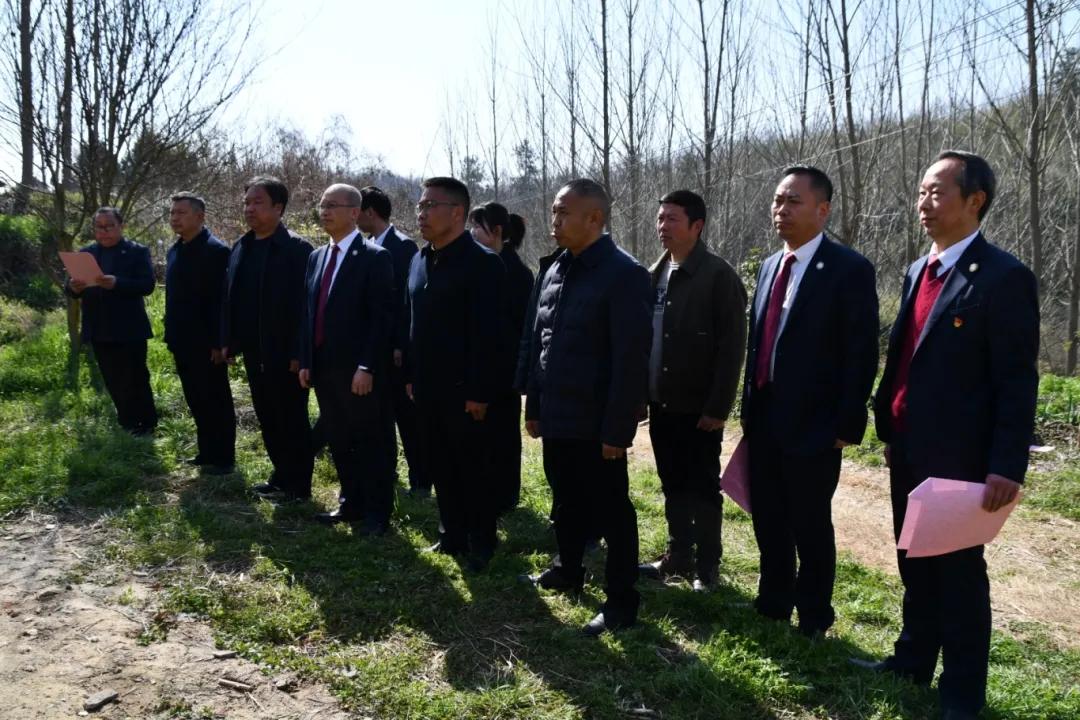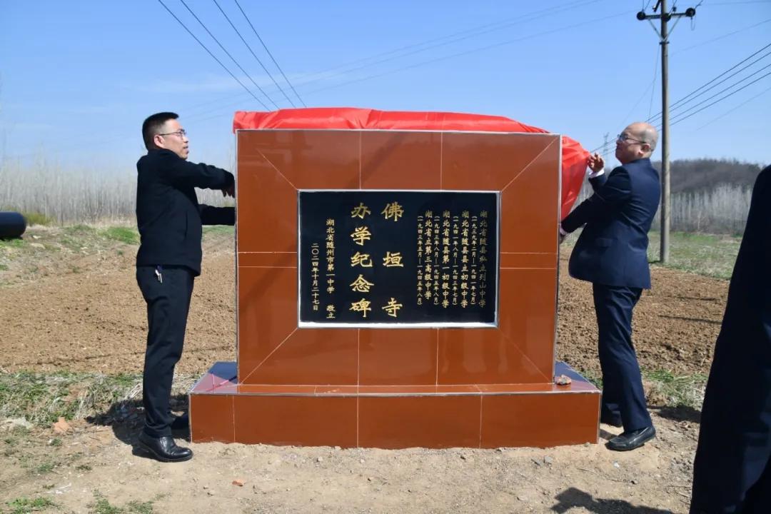 在隨縣澴潭鎮(zhèn)涢陽村佛垣寺辦學(xué)舊址,梁勇與蔣玉銘共同為“佛垣寺辦學(xué)紀(jì)念碑”揭幕,沈德勇、蔣玉銘、涢陽村黨支部書記陳卓先后致辭。