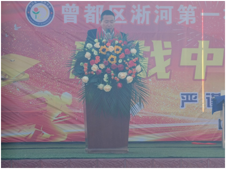 大會在莊嚴的國歌聲中拉開帷幕。學(xué)校黨支部書記、校長余松林致辭并勉勵全體學(xué)生珍視這關(guān)鍵的百日時光,堅定目標、奮力一搏,以更加飽滿的熱情和更加堅定的信念迎接中考的挑戰(zhàn)。他強調(diào)了中考的重要性,并鼓勵學(xué)生們要有堅定的目標、科學(xué)的學(xué)習(xí)方法和良好的心態(tài)。聲聲教誨,殷殷寄語,充滿了對學(xué)生們的信任和期待。