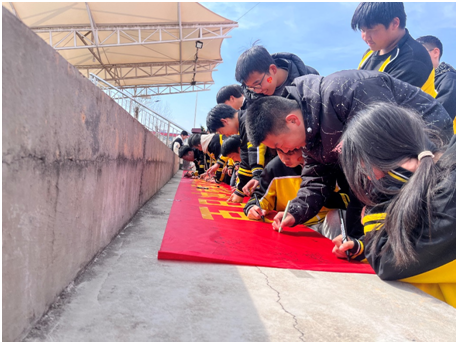 大會上,各班師生集體宣誓。鏗鏘有力的聲音,彰顯著每一位師生以筆墨為舟,以信念為槳,將披荊斬棘、一往無前。學(xué)生們在條幅上簽名,書寫下自己的夢想和目標,以此見證他們的承諾和決心。教育營商環(huán)境的持續(xù)優(yōu)化,為師生的成長與發(fā)展提供了豐沃土壤,在此良好契機下,淅河第一初級中學(xué)一同期待每一位學(xué)子中考中取得輝煌的成績,為學(xué)校爭光,為自己的人生添彩!