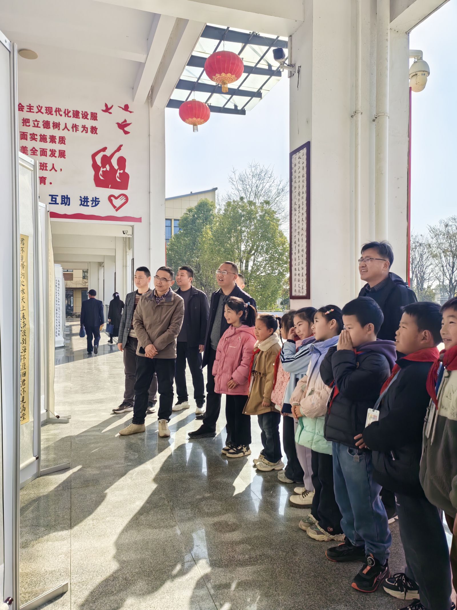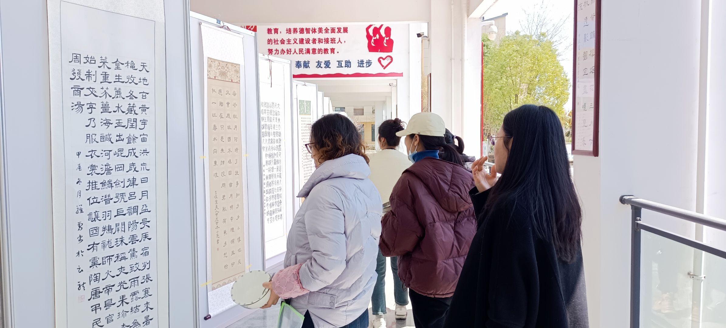 教師們駐足于展板前,細品楷書之端正、行草之灑脫,在橫豎撇捺間感悟"身正為范"的教育初心;學生們穿梭于展廊中,在墨香中感受書法藝術(shù)的魅力,汲取文明的養(yǎng)分。不少學生表示深受觸動,今后要勤練書法,傳承文化。