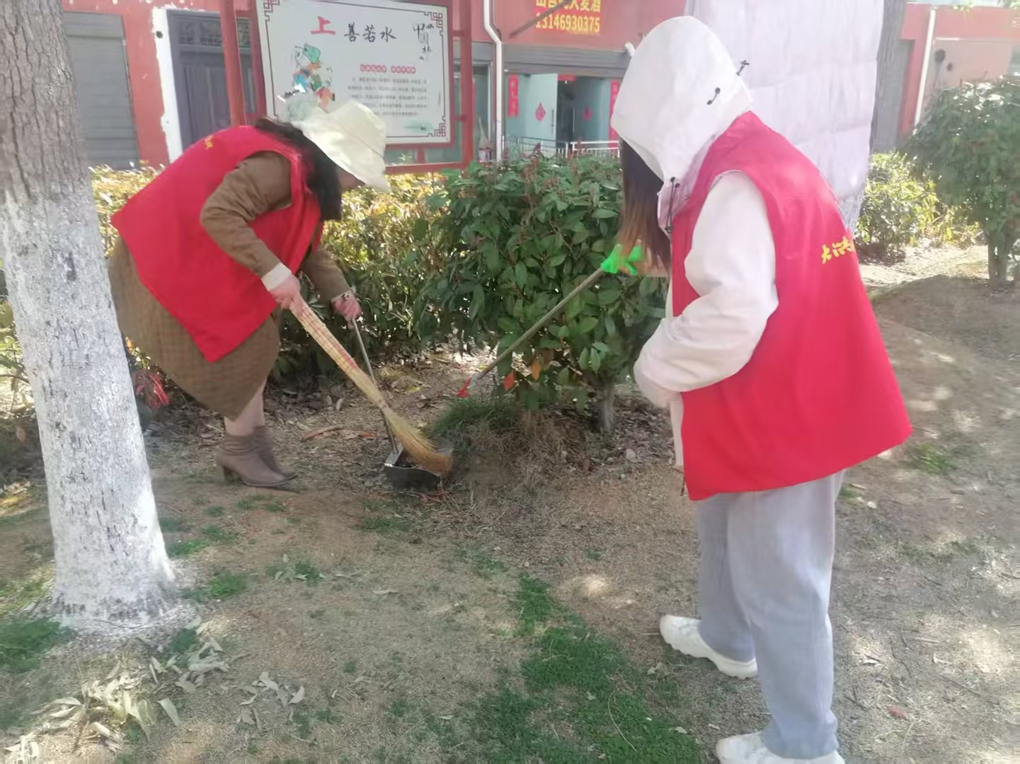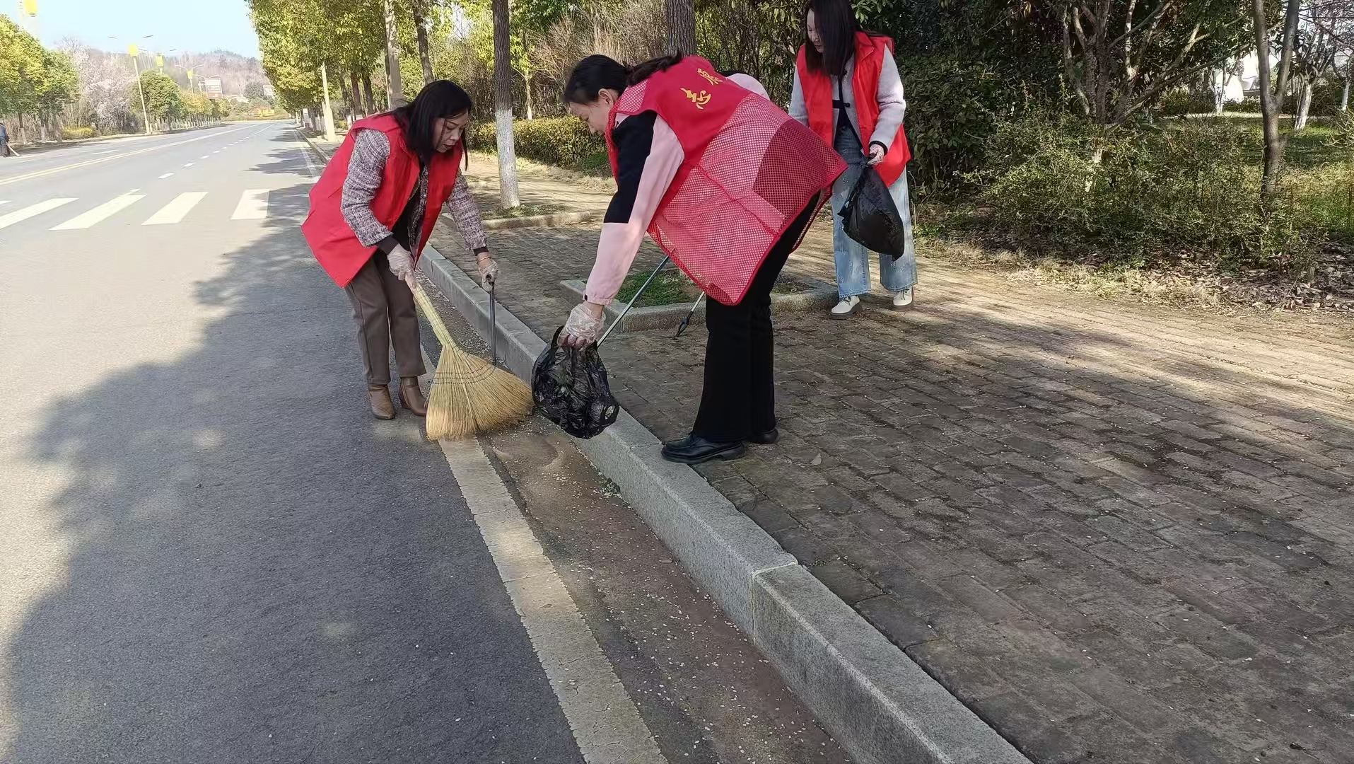 鎮(zhèn)小學的教師們則是對沿河路段及周邊小區(qū)環(huán)境進行整治。這里住戶較多,車流量較大,所以重點對那些容易被忽視的區(qū)域展開細致清掃,將堆積的雜物逐一清理,并將路面落葉清掃得干干凈凈。