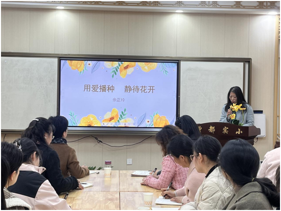 經(jīng)驗(yàn)分享環(huán)節(jié)。學(xué)校優(yōu)秀班主任代表陳蒙、艾萍、余正林老師分別從課間雅、閱讀雅、上課雅三個方面分享了自己在班級管理中借助“九雅”抓手,落實(shí)“九雅”行為規(guī)范,優(yōu)化班級管理,細(xì)化文明行為習(xí)慣養(yǎng)成,促進(jìn)學(xué)生心智成長和德育養(yǎng)成等方面的探索、經(jīng)驗(yàn)和做法。三位老師結(jié)合自己在班級建設(shè)和管理中的生動案例,進(jìn)行剖析、總結(jié)和提煉,給全體班主任帶來了一份生動詳實(shí)的班級管理方法指導(dǎo)。關(guān)注學(xué)生課間活動、關(guān)注紀(jì)律和安全,在關(guān)注中提升學(xué)生安全意識和安全素養(yǎng);抓好班級文化建設(shè)、關(guān)注學(xué)生閱讀習(xí)慣和能力的培養(yǎng),為學(xué)生持續(xù)發(fā)展和終身學(xué)習(xí)奠基;聚焦課堂,關(guān)注學(xué)生學(xué)的狀態(tài)和學(xué)的成效,立足課堂,構(gòu)建良好的班風(fēng)和學(xué)風(fēng)。這些經(jīng)驗(yàn)之談讓老師們受益匪淺。