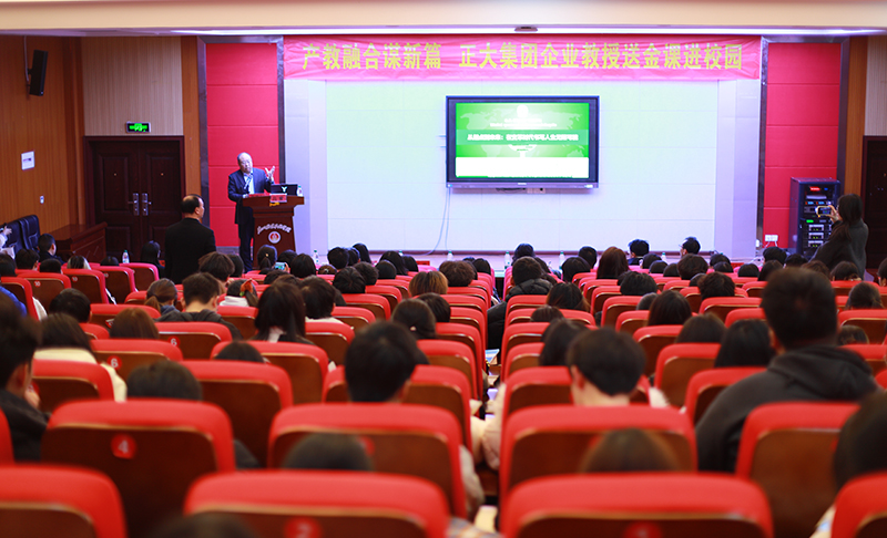 座談會后,呂攀以“從起點到未來:大學生在變革時代書寫人生無限可能”為題,在學術(shù)報告廳為全院師生帶來一場兼具思想深度與人文溫度的專題講座。呂攀以親身經(jīng)歷為引,傾囊相授人生進階的智慧與經(jīng)驗,并攜正大集團創(chuàng)新食品與師生共享,在思維碰撞與舌尖體驗中架起校企共育人才的橋梁。