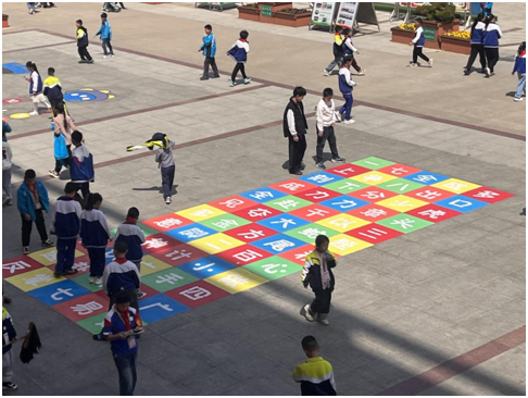 作為一所承載幾代人記憶的老校,淅河一小始終受限于狹小的校園場地。如何讓2600余名學(xué)生在短暫的課間釋放活力、安全活動這一問題牽動著全體教師的心。開學(xué)伊始,學(xué)校政教處聯(lián)合地面彩繪美術(shù)機構(gòu),將新教學(xué)樓前400余平方米的空地“變廢為寶”,精心設(shè)計6大主題地面彩繪:“數(shù)字王國”里藏著數(shù)學(xué)迷宮,“神奇字母”變身聲母韻母對對碰;“承古之韻”的成語跳格子與“童心向黨”的紅色足跡相映成趣,而“安全闖關(guān)棋”和“傳統(tǒng)游戲方陣”更讓安全教育與童真童趣完美融合。