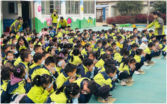 演練前,各班教師通過繪本講解、情景模擬等方式,向幼兒普及火災(zāi)逃生知識。上午10時,警報聲驟然響起,全園師生迅速進(jìn)入應(yīng)急狀態(tài)。孩子們在老師引導(dǎo)下,用濕毛巾捂住口鼻,彎腰沿安全通道有序撤離至操場,全程僅用時2分15秒。集合后,各班立即清點(diǎn)人數(shù)并上報,確保無一人遺漏。教師代表張紅紅演練現(xiàn)場講解滅火器使用方法,指導(dǎo)教職工實(shí)操演練,并帶領(lǐng)幼兒近距離參觀消防器材,通過互動問答加深理解。