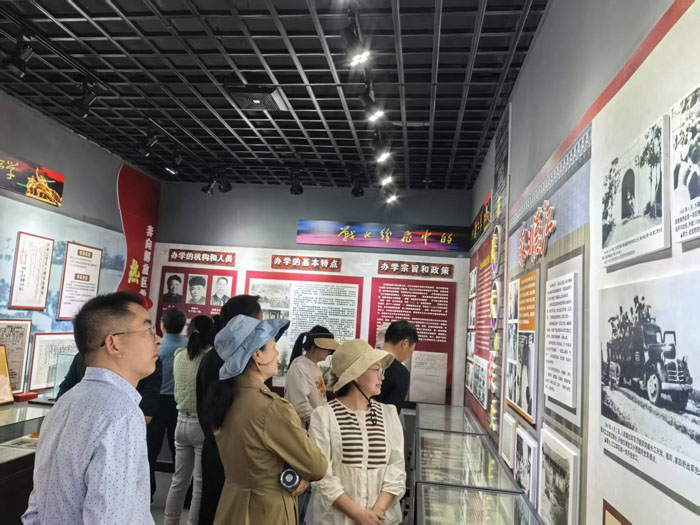 在陳列館講解員的帶領(lǐng)下,教師們依次參觀了江漢公學各個主題展廳。通過珍貴的歷史照片、文物資料,大家深入了解了江漢公學在解放戰(zhàn)爭時期的光輝歷程。這所由中共江漢區(qū)委創(chuàng)辦的“紅色學!保瑸楦锩囵B(yǎng)了大批軍政干部,被譽為“江漢解放區(qū)的搖籃”。