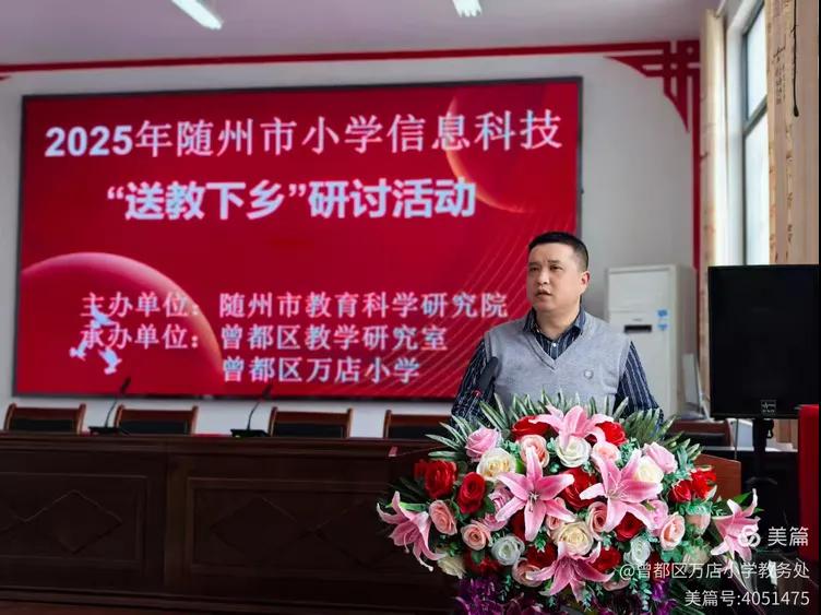 隨州新聞網(wǎng)訊 (通訊員宋虹霞)為促進(jìn)城鄉(xiāng)教育均衡發(fā)展,整合教育教學(xué)資源,“把脈”課堂教學(xué),助力“雙減”落實(shí),充分發(fā)揮名師引領(lǐng)、示范和輻射作用,大力提高課堂教學(xué)效果,3月27日,由隨州市教育科學(xué)研究院主辦、曾都區(qū)教學(xué)研究室承辦的2025年隨州市小學(xué)信息科技“送教下鄉(xiāng)〞研討活動于在曾都區(qū)萬店小學(xué)舉行。