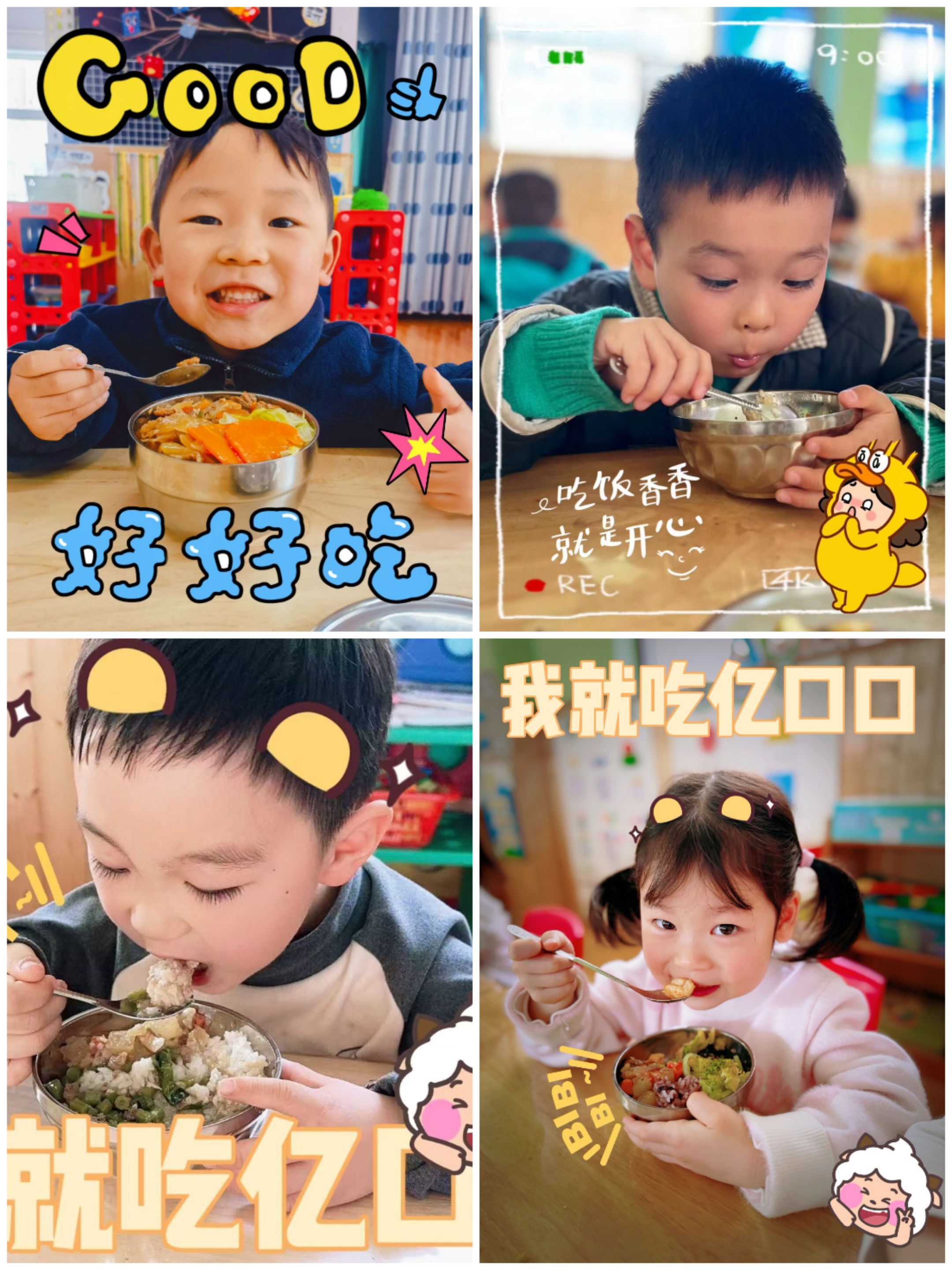 有一種特殊的誘惑叫美食的誘惑,有一種獨(dú)特的味道叫幼兒園的味道。在這里,每一餐不僅僅是簡(jiǎn)單的進(jìn)食,更是一場(chǎng)充滿樂(lè)趣的味蕾之旅。孩子們圍坐在餐桌前,小手迫不及待地拿起勺子,一張張小臉上寫(xiě)滿了期待與滿足!“老師,今天的飯菜好香啊!”“我最喜歡喝肉丸子湯啦!我要喝兩碗!”孩子們一邊津津有味地品嘗著可口的飯菜,一邊分享著他們的美食心得,驕傲地展示自己“光盤(pán)”的成果。