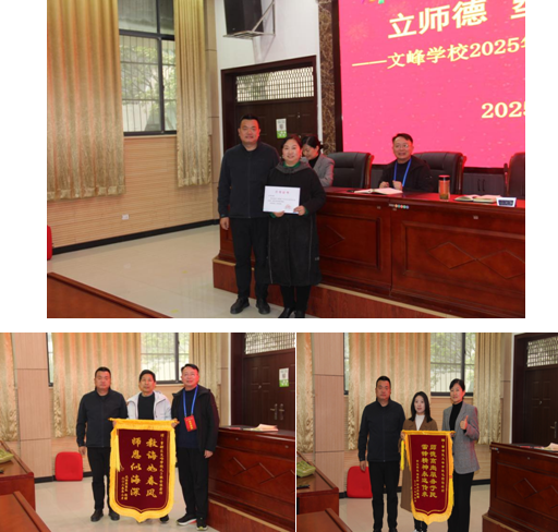 黨支部書記、校長(zhǎng)劉浩、副校長(zhǎng)王力、副校長(zhǎng)沈俊俊為初中部凌書勇、小學(xué)部包莉筠老師頒發(fā)了學(xué)生家長(zhǎng)贈(zèng)送的錦旗,為曾都區(qū)2024年“新華杯”中小學(xué)生文藝節(jié)目匯演合唱優(yōu)秀指導(dǎo)教師王玲頒發(fā)了榮譽(yù)證書。