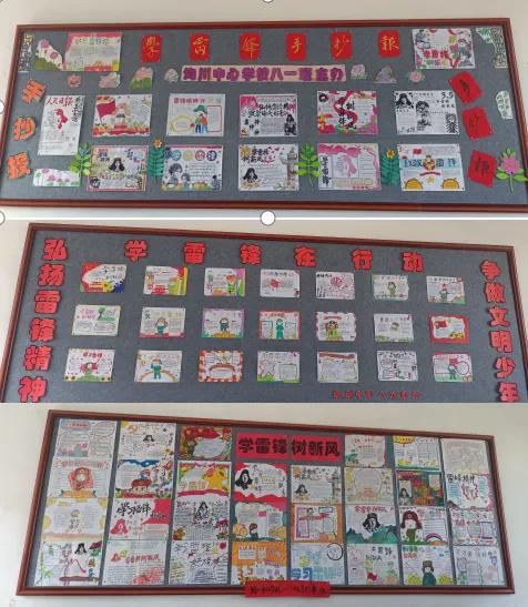 一幅幅手抄報內(nèi)容豐富、形式多樣,有的以雷鋒的生平事跡為主題,有的聚焦于雷鋒精神在當(dāng)代的傳承,還有的通過描繪身邊的好人好事,展現(xiàn)新時代的雷鋒精神。這些手抄報不僅展示了學(xué)生的繪畫和寫作才能,更讓他們在創(chuàng)作過程中深刻體會到雷鋒精神的偉大和可貴。