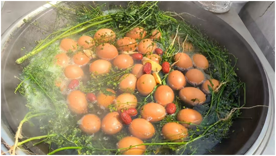 活動伊始,老師們帶著孩子們來到幼兒園的種植園,開啟尋找芥菜之旅。孩子們好奇地蹲下,仔細觀察,在老師指導(dǎo)下,小手握住芥菜,輕輕用力拔起,不一會兒,小籃子就裝滿了收獲;氐浇淌,老師一邊煮雞蛋,一邊給孩子們講述著三月三吃芥菜煮雞蛋“除百病”的美好傳說,孩子們瞪大眼睛,聽得津津有味。