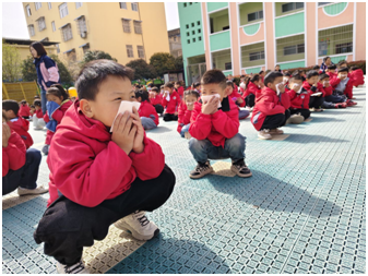 上午10:00,消防警報鈴?fù)蝗豁懫,各班教師迅速做出反?yīng),引導(dǎo)幼兒用濕毛巾捂住口鼻,低頭彎腰從相應(yīng)安全出口有秩序、有組織的撤離,全園263名幼兒共用時2分48秒全部撤離到幼兒園的安全地帶。后勤人員、保安、教師、幼兒認真學(xué)習(xí)滅火器的使用技巧和方法,并親自動手操作使用滅火器現(xiàn)場滅火,讓全體師幼掌握了遇到突發(fā)事件的應(yīng)變能力、自救、逃生和自我保護的方法,真正做到警鐘長鳴,防患于未然。