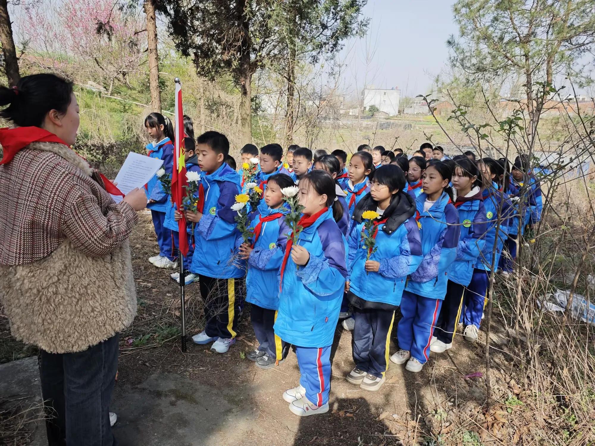 大隊輔導(dǎo)員為隊員們介紹了劉華早同志的英雄事跡。英雄的感人事跡在隊員們的心中烙下了深深的印記,更在他們稚嫩的心中,種下了一顆愛國的種子。全體師生列隊紀(jì)念碑前,為革命先烈默哀。每一個人的心中都在向革命先烈們曾經(jīng)所經(jīng)歷的風(fēng)霜雪雨、艱苦磨難致敬,為他們復(fù)興中華、赴湯蹈火的崇高精神致敬。