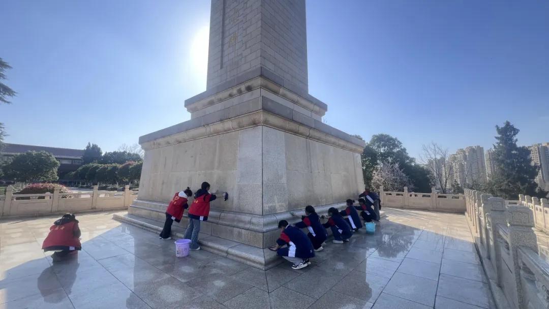 上午8點,師生們手拿鮮花,懷著崇敬的心情有序前往烈士陵園。在莊嚴肅穆的革命烈士紀念碑前,大家整齊列隊,奏唱國歌,激昂的旋律回蕩在陵園上空,寄托著對革命先烈的無限追思。老師們向紀念碑敬獻花籃,同學(xué)們通過擦拭烈士墓碑、描金描紅、敬獻鮮花等形式,以此來表達對革命先烈的崇高敬意。隨后全體師生默哀三分鐘,現(xiàn)場氣氛凝重,每個人心中都滿是對先烈的緬懷之情。