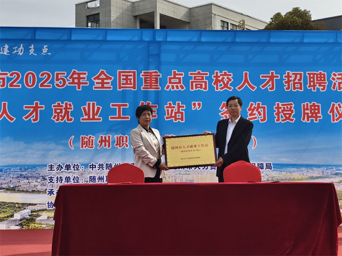隨州市委組織部相關(guān)負(fù)責(zé)人出席儀式并表示:“為鼓勵(lì)畢業(yè)生留隨發(fā)展專門研究出臺(tái)了關(guān)于推動(dòng)提升職院畢業(yè)生本地就業(yè)率的實(shí)施意見(jiàn),提出了‘城市體驗(yàn)計(jì)劃’、降低安居成本、提供購(gòu)房補(bǔ)貼、求職期間7天免費(fèi)住宿等一系列支持舉措”。儀式上,與隨州職院簽訂了人才合作戰(zhàn)略協(xié)議,授牌“隨州市人才就業(yè)工作站”,并為教師代表頒發(fā)“隨州市引才大使”聘書。這一舉措旨在進(jìn)一步加強(qiáng)與隨州職院之間的溝通協(xié)作,吸引更多職院畢業(yè)生了解隨州、留在隨州、扎根隨州,為隨州高質(zhì)量發(fā)展注入源源不斷地新鮮血液,同時(shí)為“建功支點(diǎn)”建設(shè)提供人才支撐。