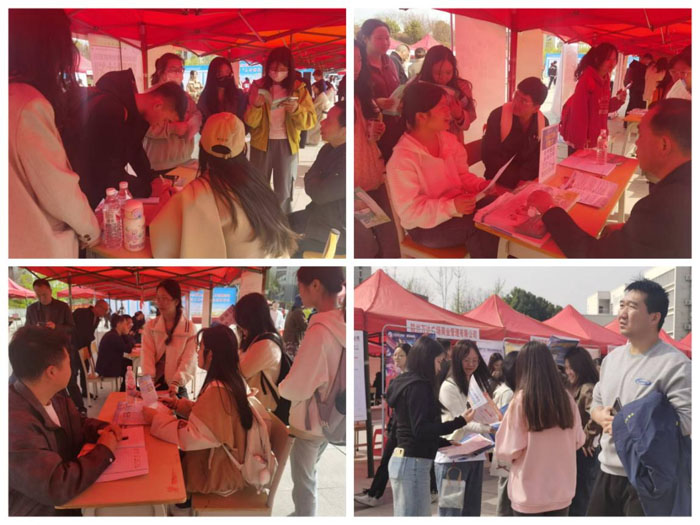 隨后開(kāi)啟的校園招聘會(huì)現(xiàn)場(chǎng)氣氛熱烈非凡。據(jù)了解,共有60家企事業(yè)單位參與本次招聘會(huì),提供以醫(yī)療護(hù)理行業(yè)為主,專汽、文旅、制造等多個(gè)領(lǐng)域的近千個(gè)優(yōu)質(zhì)崗位。這些崗位不僅數(shù)量充足,而且薪資待遇理想,部分崗位還提供了完善的職業(yè)發(fā)展規(guī)劃與晉升空間。此外,還特別設(shè)置政策咨詢臺(tái)。市人才服務(wù)中心工作人員為學(xué)生們?cè)敿?xì)解讀著最新的就業(yè)創(chuàng)業(yè)政策。隨州職業(yè)技術(shù)學(xué)院的眾多學(xué)子手持精心準(zhǔn)備的簡(jiǎn)歷,穿梭于各個(gè)展位之間,積極與招聘人員交流,詳細(xì)了解單位情況與崗位要求,現(xiàn)場(chǎng)投遞簡(jiǎn)歷數(shù)量297份,達(dá)成就業(yè)意向59人。來(lái)自醫(yī)療衛(wèi)生領(lǐng)域的隨縣安居鎮(zhèn)衛(wèi)生院人事負(fù)責(zé)人也提到:“學(xué)校的護(hù)理專業(yè)學(xué)生實(shí)踐能力強(qiáng),與本院的崗位需求契合度良好。通過(guò)這次招聘會(huì),我們與一些隨州籍的學(xué)生深入溝通,他們留鄉(xiāng)就業(yè)的意愿強(qiáng)烈,這對(duì)于充實(shí)本地醫(yī)療人才隊(duì)伍十分有利!