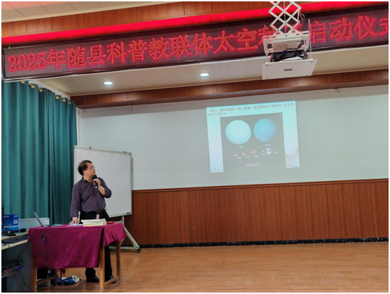 縣教育局基礎(chǔ)教育股長(zhǎng)何金波講話,強(qiáng)調(diào)以“太空種子”構(gòu)建全域科學(xué)教育生態(tài),通過聚焦“興趣啟蒙”“創(chuàng)新能力”“全域聯(lián)動(dòng)”推進(jìn)科學(xué)教育,以“協(xié)同育人”凝聚合力,闡述了科普教育在新時(shí)代的深遠(yuǎn)意義,肯定了隨縣科普教聯(lián)體成員學(xué)校成績(jī)亮點(diǎn),指明了學(xué)?破战逃姆较虿呗。