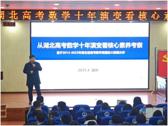 隨州新聞網(wǎng)訊(通訊員高祥玲)近日,湖北汽車工業(yè)學(xué)院數(shù)字經(jīng)濟(jì)學(xué)院應(yīng)用數(shù)學(xué)系周驍教授受邀到隨縣一中,為高三學(xué)子作《從湖北高考數(shù)學(xué)十年演變看核心素養(yǎng)考察》專題講座。這場聚焦高考數(shù)學(xué)改革趨勢的學(xué)術(shù)盛宴,為正處于沖刺階段的高三學(xué)生提供了精準(zhǔn)的備考指導(dǎo)。
