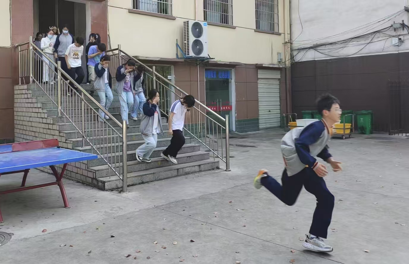 伴隨著警報(bào)聲拉響,學(xué)生們在班主任和安全引導(dǎo)員的指揮下,捂住口鼻、彎腰前行,有序向操場集合。僅用3分鐘,全體師生就安全到達(dá)指定區(qū)域集合并清點(diǎn)完人數(shù)。此次應(yīng)急撤離演練圓滿成功。