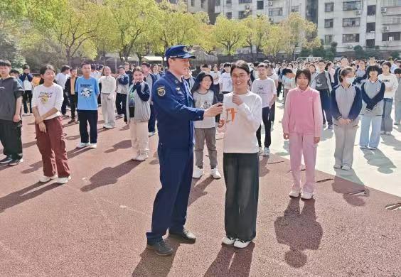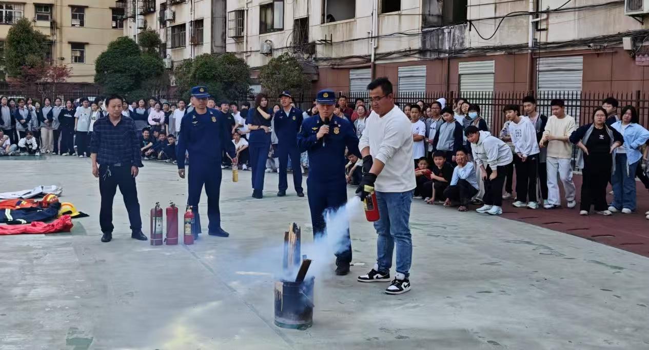 隨后,學(xué)校特邀消防員為學(xué)生們講解了逃生注意事項(xiàng),并現(xiàn)場演示滅火器使用方法,介紹了突發(fā);沸孤都盎馂(zāi)時的應(yīng)對措施。