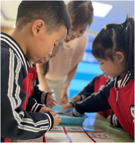 大班則結(jié)合“自然測(cè)量”實(shí)踐與“西游取經(jīng)路數(shù)學(xué)闖關(guān)”游戲,運(yùn)用工具測(cè)量物體、破解數(shù)學(xué)謎題,更在“認(rèn)識(shí)人民幣”模擬購(gòu)物環(huán)節(jié)中,學(xué)會(huì)貨幣換算與交易規(guī)則。課堂上,孩子們專注操作、熱烈討論,在游戲化情境中感受數(shù)學(xué)與生活的緊密聯(lián)結(jié)。