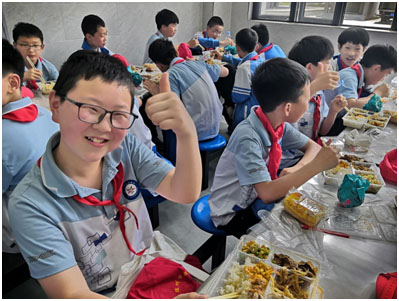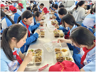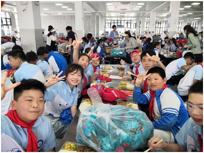 中午時分,師生共赴食堂就餐,整潔的環(huán)境、豐富的菜品和有序的用餐流程,讓六年級學(xué)生感受“舌尖上的文帝溫度”。餐桌上,兩校學(xué)生熱情交流,分享見聞,在煙火氣息中拉近了距離。