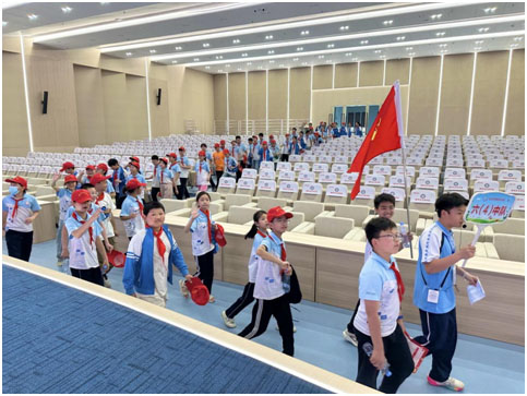 文藝匯演結(jié)束后,六年級師生在志愿者帶領(lǐng)下開啟校園參觀之旅。從寬敞的大操場到書香四溢的教學(xué)樓,從設(shè)施完備的綜合樓球館到各具特色的社團(tuán)活動室,每一處角落都讓學(xué)生們充滿好奇。在閱讀角,他們翻閱豐富的藏書;在校園心愿墻,他們駐足欣賞學(xué)生的理想;在優(yōu)秀學(xué)子表彰榜,聆聽小解說員的講解……校園里的每一處細(xì)節(jié),都展現(xiàn)著文帝學(xué)校獨(dú)特的魅力。