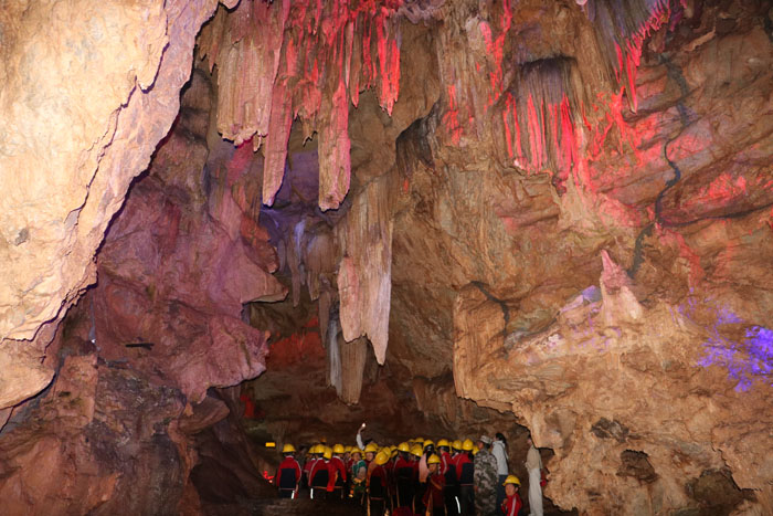 4月28日,鎮(zhèn)中心學(xué)校組織全鎮(zhèn)小學(xué)師生近400人踏上大洪山研學(xué)之旅,清晨,師生走進(jìn)大洪山雙王洞。五彩燈光勾勒出鐘乳石的奇崛輪廓,石筍如破土玉柱,石幔似流瀑懸垂。在大洪山革命歷史館,泛黃的文獻(xiàn)、斑駁的槍炮展品,重現(xiàn)了先烈們的斗爭(zhēng)歷程。講解員講述李先念等革命先輩在此建立根據(jù)地的故事,同學(xué)們駐足凝視歷史照片,在聆聽(tīng)中感悟 “大洪山精神” 的厚重內(nèi)涵,紛紛表示要傳承紅色基因。
