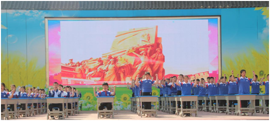 緊隨班級(jí)方陣的,是氣勢磅礴的團(tuán)體節(jié)目表演。百名學(xué)生齊演《捍衛(wèi)中華》桌舞操,以課桌為舞臺(tái),擊掌、拍案、舞臂,整齊劃一的動(dòng)作,鏗鏘有力的節(jié)奏傳遞出強(qiáng)國少年的豪情壯志;壓軸節(jié)目《鼓舞中國》更是將開幕式推向高潮——中國大鼓震天動(dòng)地,鼓槌翻飛間激蕩出非遺文化的磅礴力量,而輕盈的水袖翩然環(huán)繞,剛勁與柔美交織,演繹中華文化的兼容并蓄。這場傳統(tǒng)與現(xiàn)代碰撞的視聽盛宴,展現(xiàn)了淅河一小學(xué)子對(duì)中華文化的傳承與創(chuàng)新。