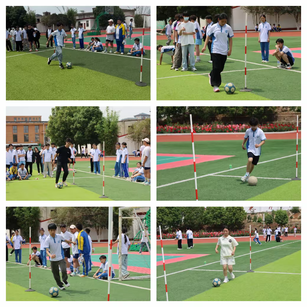 那精彩的一躍,帶著青春的希望。立定跳遠(yuǎn)比賽現(xiàn)場(chǎng),同學(xué)們的動(dòng)作標(biāo)準(zhǔn)而流暢,半蹲,起跳,飛躍,在空中劃過一道美麗的弧線。足球場(chǎng)上,運(yùn)動(dòng)健兒們身姿矯健,腳下的步伐靈活多變,每一次觸球都充滿了智慧與激情。在這片綠茵場(chǎng)上,他們用足球展現(xiàn)著自我挑戰(zhàn)的魅力。