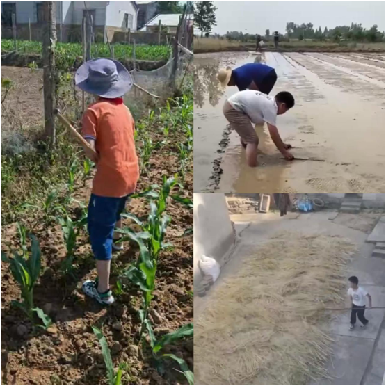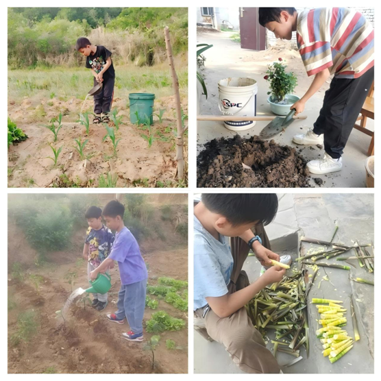 除了家務(wù)勞動,個別同學(xué)們還走進田園,體驗了一把當(dāng)小農(nóng)夫的快樂。通過這次田園勞動,孩子們明白了糧食的來之不易,懂得了“誰知盤中餐,粒粒皆辛苦”的深刻含義,也更加珍惜現(xiàn)在的幸福生活。