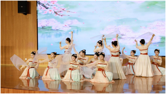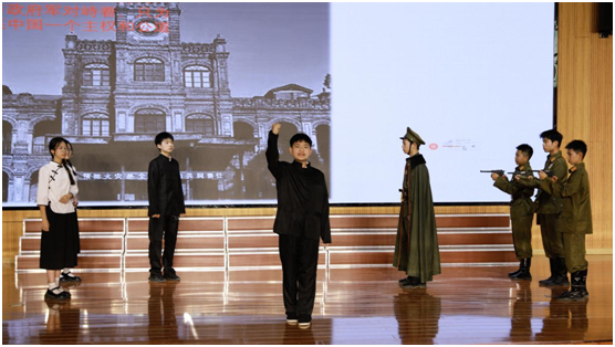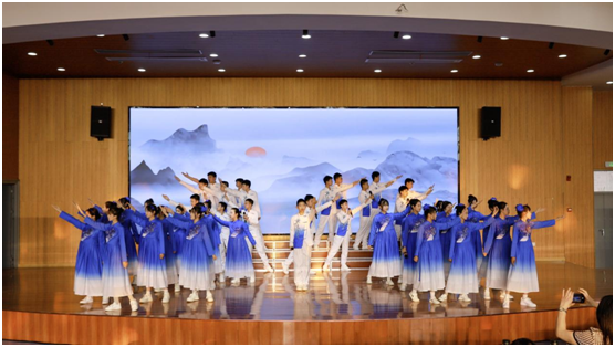 活動(dòng)在舞蹈《溪女盈盈》的水墨意境中拉開帷幕。學(xué)生們以詩為舟,泛游古今:《遇見論語》重現(xiàn)春秋智慧,《青花瓷》古箏合奏演繹東方雅韻,《破曉》《覺醒年代》帶觀眾重回?zé)嵫序v的革命歲月。原創(chuàng)節(jié)目《超越時(shí)空的對話——如愿》以當(dāng)代少年視角對話先烈,將現(xiàn)場氛圍推向高潮。