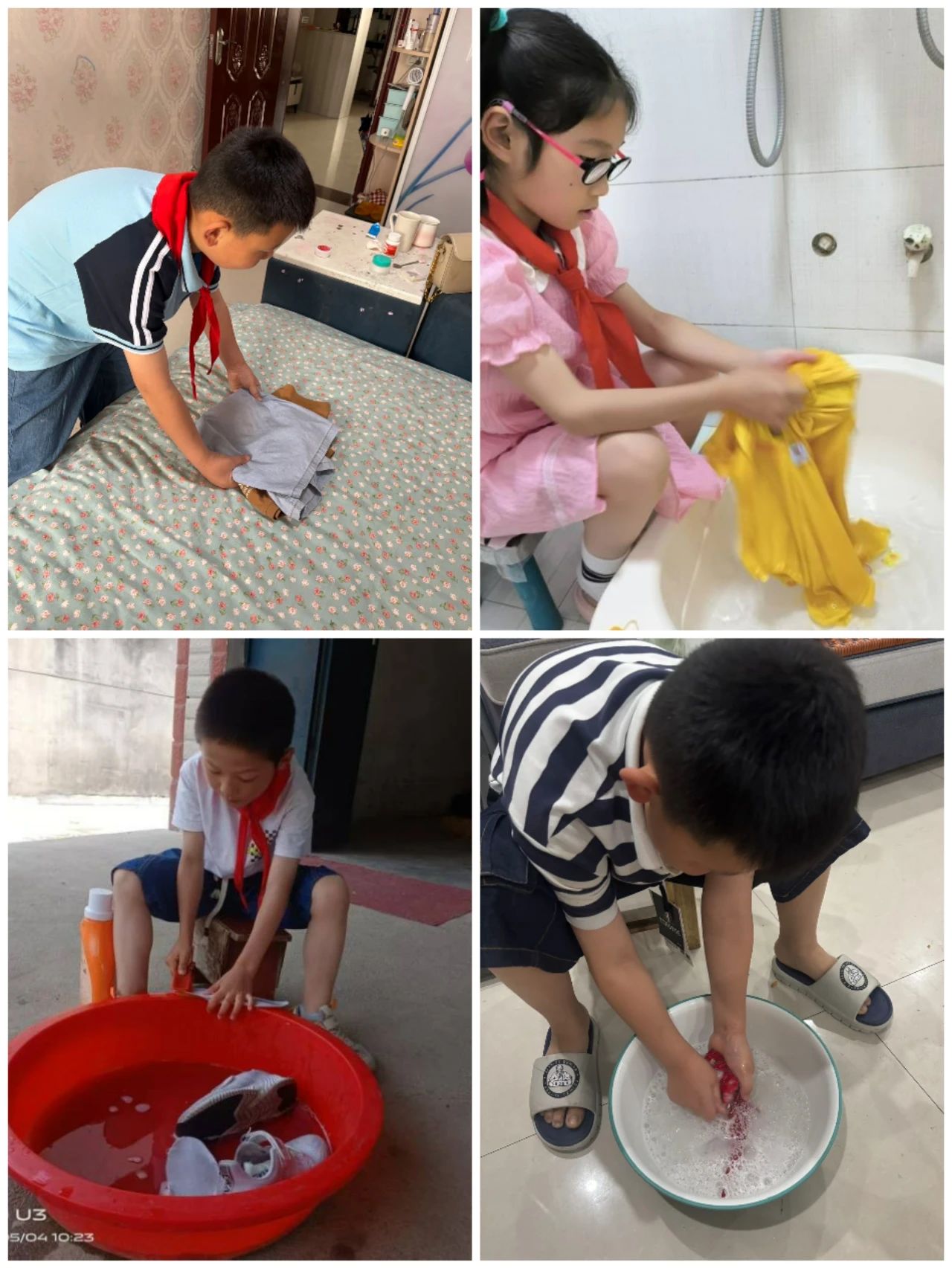 隊員們用自己的雙手為家庭增添溫馨與整潔,疊衣服,清洗紅領巾,洗書包,有條不紊。日常的家務勞動,讓隊員們學會了獨立,也懂得了感恩,讓家庭充滿了溫馨與歡樂。