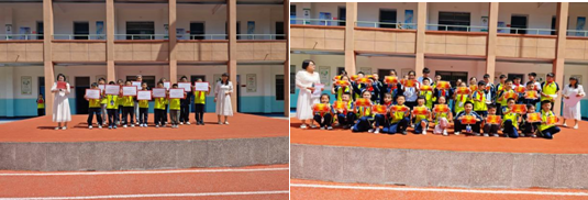 學(xué)校領(lǐng)導(dǎo)為在各個(gè)項(xiàng)目中表現(xiàn)出色的同學(xué)頒發(fā)獎(jiǎng)狀。選手們臉上洋溢著自豪和喜悅的笑容,他們手中的獎(jiǎng)狀不僅僅是一份榮譽(yù),更是他們?cè)谥R(shí)探索道路上的一座里程碑。