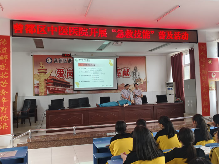 在急救技能培訓中,急診科團隊利用人體模型,向學生演練胸外按壓、人工呼吸等操作,初步掌握“黃金四分鐘”急救要領!耙郧坝X得急救是醫(yī)生的事,現(xiàn)在發(fā)現(xiàn)我們也能救人!”參與培訓的王同學激動地說道。