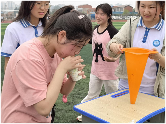 運(yùn)動(dòng)會(huì)圍繞“團(tuán)隊(duì)協(xié)作、輕松減壓”主線,設(shè)置四大創(chuàng)意項(xiàng)目。在“無敵風(fēng)火輪”環(huán)節(jié),各班用廢舊橫幅制作“戰(zhàn)車”,高三(9)班以整齊口號(hào)和默契配合率先沖線;背靠背運(yùn)球接力中,搖晃的氣球頻頻爆破,高三(1)班同學(xué)們卻笑言“壓力破了更輕松”;“勾肩抬腳”項(xiàng)目里,同學(xué)們化身“人形蜈蚣”競(jìng)速,滑稽的動(dòng)作引發(fā)陣陣歡笑;壓軸的“南水北調(diào)+氣球運(yùn)杯”更將現(xiàn)場(chǎng)氣氛推向高潮,學(xué)子們鼓腮吹氣球運(yùn)紙杯,被戲稱為“最硬核肺活量特訓(xùn)”。