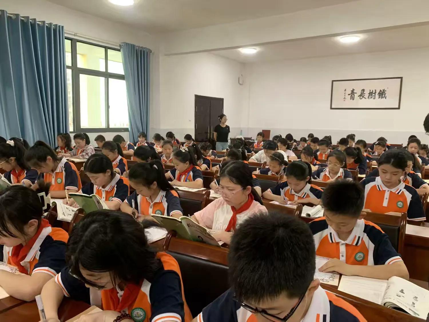 比賽現(xiàn)場,參賽學(xué)生們端坐在教室中,專注于面前的紙筆,以嚴(yán)謹(jǐn)?shù)膽B(tài)度完成每一個字母的書寫。他們?nèi)褙炞⒌纳袂榕c有序的書寫節(jié)奏,共同營造出濃厚的學(xué)習(xí)氛圍?紙鰞(nèi),教師們來回巡視,仔細(xì)檢查書寫規(guī)范,同時維持現(xiàn)場紀(jì)律,確保比賽在公平有序的環(huán)境中進行。