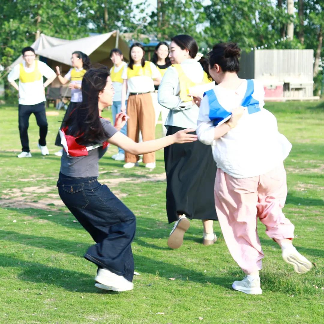 “撕名牌大戰(zhàn)”更是將現(xiàn)場氣氛推向了頂點!隨著一聲令下,營地瞬間變成“戰(zhàn)場”。各小組成員緊密配合,巧妙謀劃,有人巧妙走位引開對手,有人組成人墻守護(hù)隊友,競爭激烈卻又充滿樂趣。被撕下名牌的老師笑著退場:"這策略比設(shè)計教學(xué)環(huán)節(jié)還燒腦!"最終獲勝小組捧著"額外美食包"歡呼,團(tuán)隊精神在此刻盡顯!