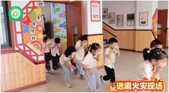 隨著一陣急促的消防警報聲響起,演練正式開始。各班教師迅速反應,立即組織幼兒用濕毛巾捂住口鼻,彎腰低姿態(tài),按照預定的疏散路線,快速、有序地撤離到安全區(qū)域。
