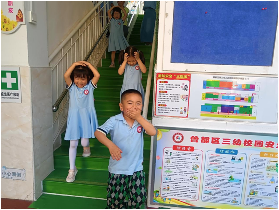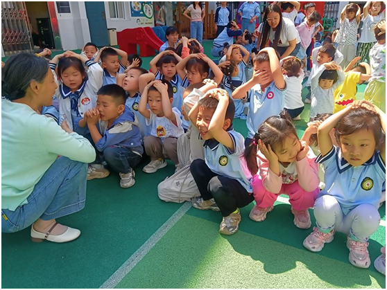 各班老師迅速反應(yīng),指揮孩子們就近蜷身躲在堅(jiān)固的桌下,雙手護(hù)頭避險(xiǎn)。待“地震波”警報(bào)減弱,孩子們?cè)诶蠋煄ьI(lǐng)下彎腰捂口鼻,沿逃生路線快速撤離,有條不紊地抵達(dá)操場(chǎng)安全區(qū)。清點(diǎn)人數(shù)、上報(bào)情況……演練全程緊湊高效,充分展現(xiàn)師生出色的應(yīng)急素養(yǎng)。副園長(zhǎng)劉艷在總結(jié)時(shí)強(qiáng)調(diào):“隨機(jī)演練就是要鍛煉大家的應(yīng)急本能,讓逃生技能變成肌肉記憶,危險(xiǎn)來臨時(shí)才能最大程度保障生命安全。”