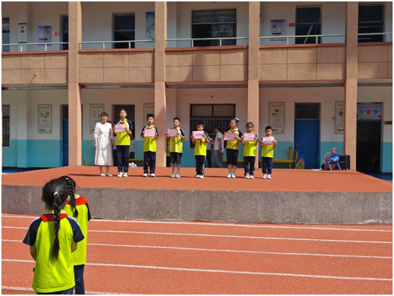 經過緊張激烈角逐,評委現場打分,在年級組廣播操比賽評選中,一(2)班、二(1)班、三(2)班、四(1)班、五(1)班、六(2)班分別榮獲第一名,其他班級榮獲第二名。學校領導為獲獎的班級頒發(fā)獎狀,獲勝的班級都在歡呼雀躍,為班級獲得榮譽而感到開心。