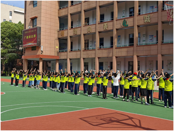 本次比賽的對象是一至六年級的所有學生,比賽由入場、展示第九套廣播操、退場幾個部分組成,采用現場評分方式進行。賽前,各班班主任與體育老師密切配合,利用大課間和體育課時間積極組織學生訓練,讓每一位同學掌握動作要領、節(jié)奏和力度要求,確保能以最好的狀態(tài)參加比賽。